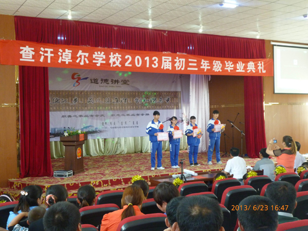 6月23日,乌审旗查汗淖尔学校隆重举行2013届毕业典礼。初三全体学生、学生家长、学校领导以及初三年级所有任课教师共计一百余人参加了典礼。